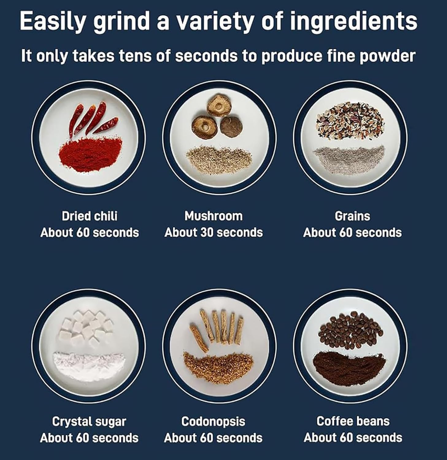 Multi-functional Grinder: This electric coffee grinder can also be used for grinding dry and solid food material, Great for grind coffee bean, dried spices, pepper, nuts, and grains.